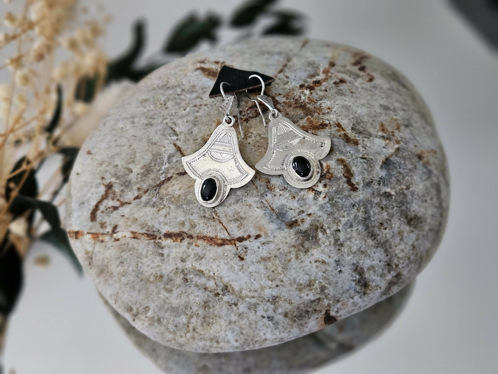 Boucles d'oreilles Touaregs en Argent et Onyx.